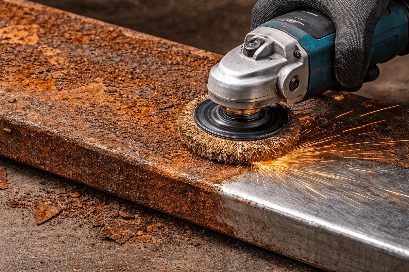 Такий спосіб ефективний для обробки невеликих ділянок, інструментів, автомобільних деталей, металевих конструкцій, елементів огорож і локальних осередків корозії. Він дозволяє швидко видалити іржу з металу, однак потребує обережності, щоб не пошкодити матеріал надмірним шліфуванням або тиском.