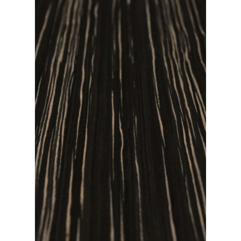Модифікований шпон ЗЕБРАНО ЧОРНЕ виготовлений з натуральної швидко зростаючої деревини. Отримують шпон з великої кількості тонких шарів деревини, пофарбованих окремо і складених в один блок за спеціальною технологією, таким чином, що виходить суцільний масив. Ця технологія відповідає сучасним екологічним вимогам і задовільняє потреби в отриманні нової текстури деревини.