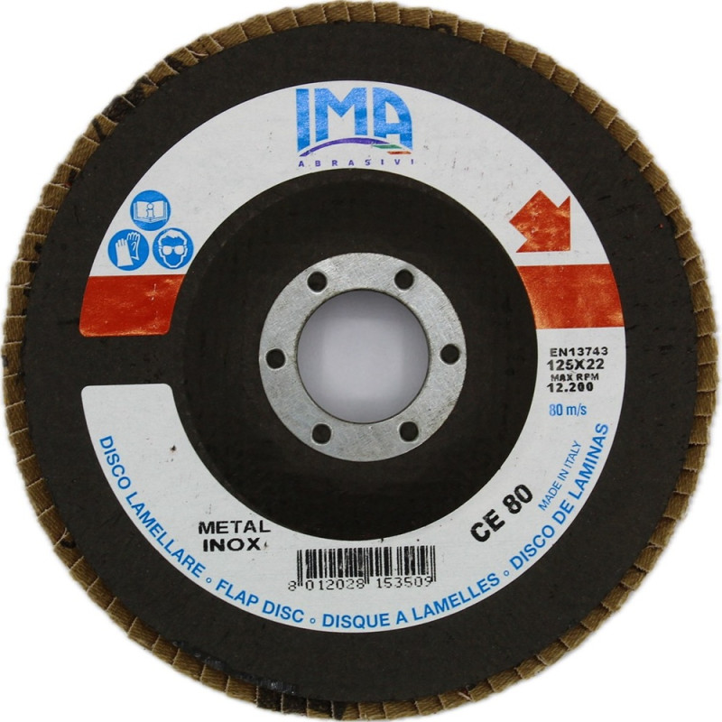 Круг пелюстковий прямий по нержавіючій сталі та металу, цирконієво-керамічний, Ceramicato CE 125×22,23 мм P80 Ima Abrasivi Круг пелюстковий прямий по нержавіючій сталі та металу, цирконієво-керамічний, Ceramicato CE 125×22,23 мм P80 Ima Abrasivi