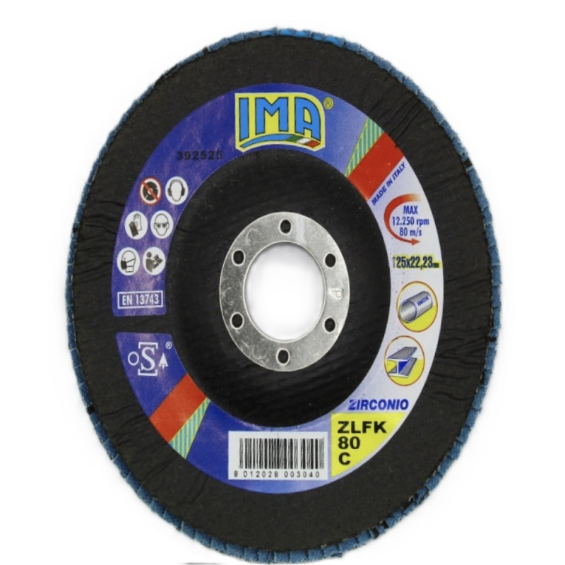 Круг пелюстковий конусний по нержавіючій сталі та металу, цирконієвий, Zlfk Zirc Conico 125×22,23 мм P80, Ima Abrasivi