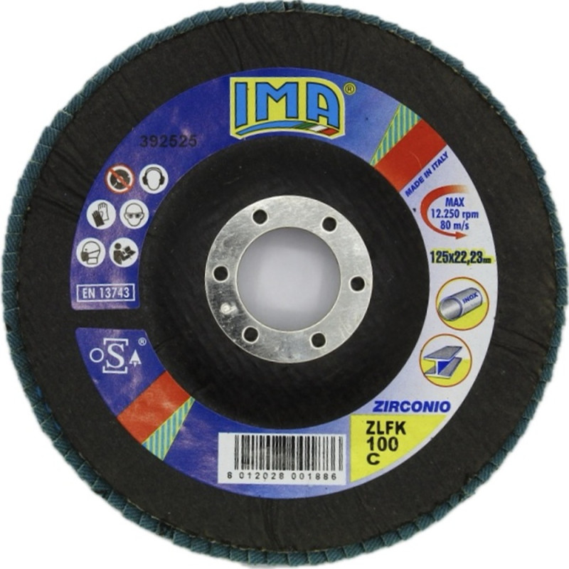 Круг пелюстковий конусний по нержавіючій сталі та металу, цирконієвий, Zlfk Zirc Conico 125×22,23 мм P100, Ima Abrasivi