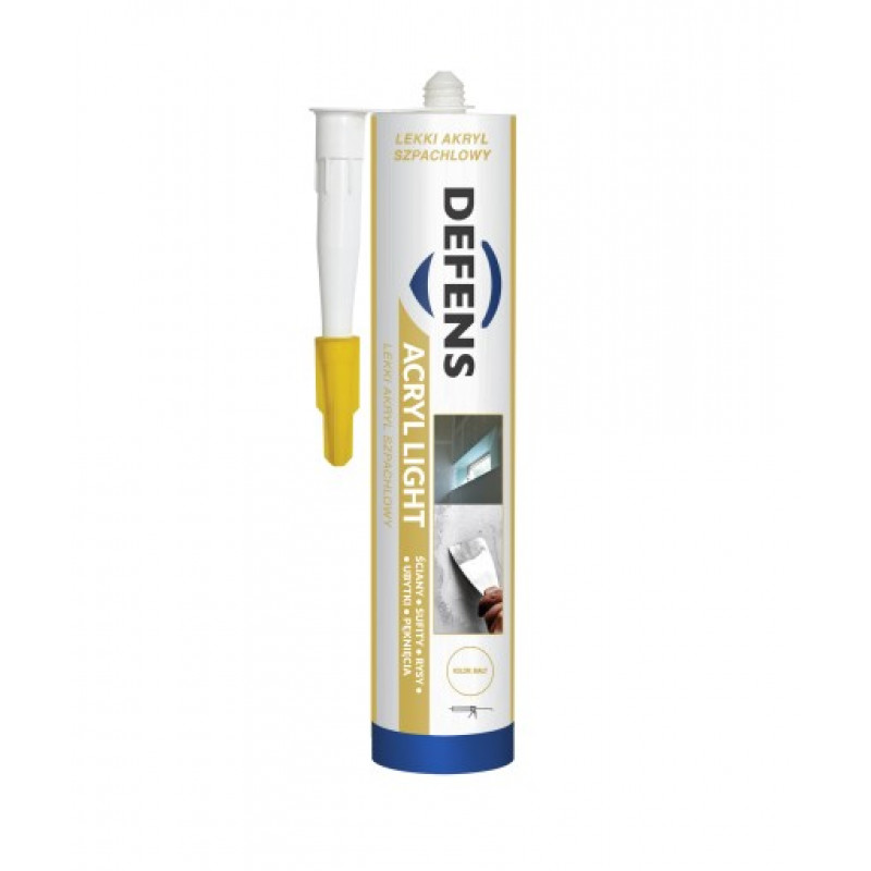 Акрилова шпаклівка Defens Light - білого кольору, не тріскається, стійкість до: води, морозу, цвілі, грибків та ультрафіолетового випромінювання.