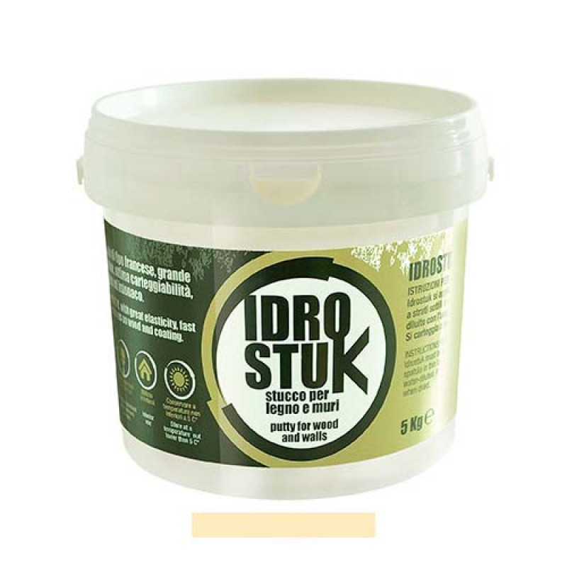 Застосовується для вирівнювання нерівностей на дерев'яних поверхнях всередині приміщення, для обробки меблів, дверей, панельних стін та стель. Суха поверхня, оброблена шпаклівкою Idrostuk, виглядає як необроблена деревна поверхня.